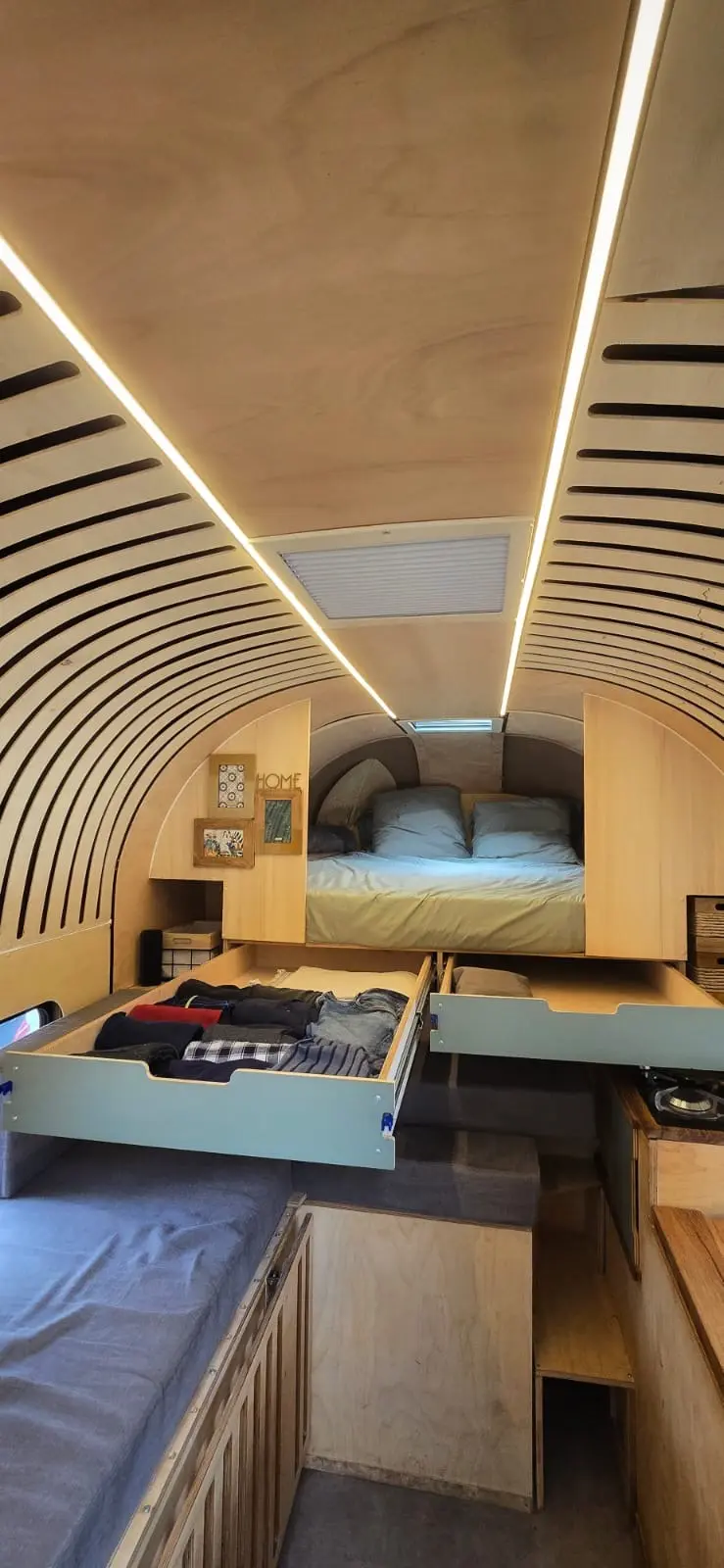 Chaque micro habitation est pensée pour le confort. L'intérieur est optimisé pour deux personnes, offrant un espace chaleureux et fonctionnel. Les aménagements et équipements intérieurs sont personnalisables et pensés selon vos besoins et contraintes. Vous avez la possibilité de choisir les revêtement selon vos goûts.